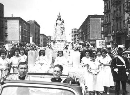 When the Virgin Mary came to New York, old women had visions, men were healed, and babies were miraculously born. But unlike at Lourdes, Marpingen, or Ezkioga, no-one questioned whether she had really appeared. Italian migrants from Polla celebrated their first festa for the Madonna of Mount Carmel on East 115th Street in 1881. They built a church for her three years later and she became the center of religious life for Harlem’s Italian community for over seventy years. In The Madonna of 115th Street (1985), Robert Anthony Orsi explores how Italian Americans used Mary to maintain their community and family life. He writes, “the figure of the Virgin was a symbol at the center of a ritual, and both symbol and ritual were taken up into a communal narrative mythology. The Madonna was not a stationary icon to be worshiped, but the focus of a drama to be acted out.” And in that drama, “the men and women of Italian Harlem shaped and found themselves.”