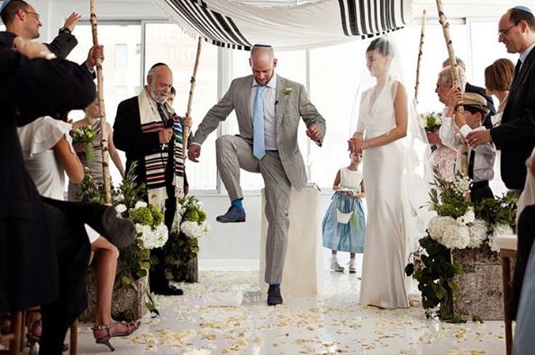 The tradition of breaking a glass at a Jewish wedding signifies completed nuptials and marks the end of the ceremony, but represents the Roman destruction of the Temple in Jerusalem in 70 AD. Some couples recite “If I forget thee, Oh Jerusalem” to remind them of their history while remembering to keep Jerusalem above their “highest joy.” Initially just the chatan (groom) would break a glass but it is common in the West for the kallah (bride) to break one also. There is debate over what kind of glass to use (betrothal or nuptial) but today it is usually a prepared glass or even a light bulb.